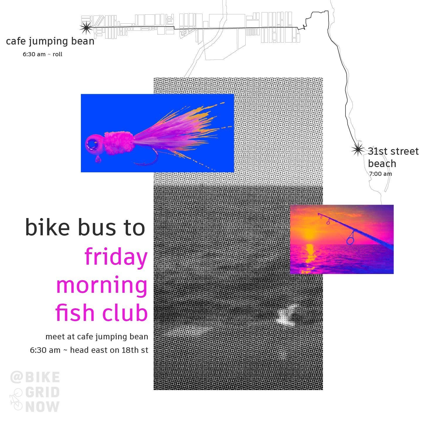 In the meantime, join Friday Morning Fish Club which rolls from Cafe Jumping Bean at 6:30am! Bring coffee, breakfast, fishing rods, or none of the above! But definitely bring yourself. Light refreshments may be provided.